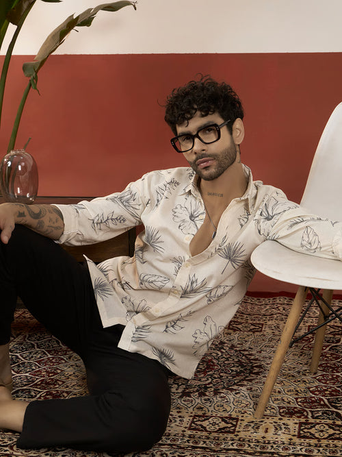 REBELAW Leaf Drift Linen Regular Fit Shirt